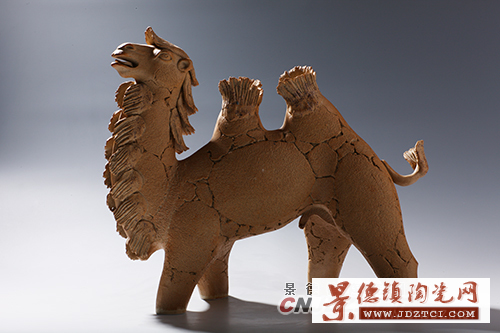 為了進(jìn)一步發(fā)掘缺陷肌理美在陶藝創(chuàng)作中的應(yīng)用,周國楨還一發(fā)不可收拾地投入到陶瓷材料的創(chuàng)新、陶藝新方法的挖掘與缺陷肌理美的產(chǎn)生之關(guān)系的探索與研究中。從一定意義上可以說,缺陷肌理美的偶發(fā)和自覺追求,成了周國楨發(fā)現(xiàn)匣缽?fù)恋却仲|(zhì)材料奇特藝術(shù)表現(xiàn)力的強(qiáng)大動力,也成了周國楨從民間挖掘和應(yīng)用泥條盤筑法、泥餅卷筒法等古老技法進(jìn)行藝術(shù)創(chuàng)作的強(qiáng)大動力。而陶瓷新材料和古老技法的成功發(fā)掘和應(yīng)用,又使周國楨缺陷肌理美的藝術(shù)追求乃至現(xiàn)代陶藝的創(chuàng)作日趨成熟和完善。而這正是周國楨之所以是周國楨的重要原因?梢院敛豢鋸埖卣f,古老技法、粗質(zhì)材料與缺陷肌理美等三者的完美結(jié)合與應(yīng)用,在中國乃至世界現(xiàn)代陶藝史上具有非常重大的學(xué)術(shù)價(jià)值。它使周國楨陶瓷藝術(shù)創(chuàng)作當(dāng)之無愧地處于“一覽眾山小”的至高學(xué)術(shù)地位。對此,周國楨“古風(fēng)時(shí)期”風(fēng)格的系列作品如《葉落歸根》(1985年)、《牛脾氣》(1985年)、《黃河》(1986年)、《老狐貍》(1988年)、《臥鹿》(1998年)等,“新表現(xiàn)時(shí)期”風(fēng)格的系列作品如《斑馬》(1988年)、《角馬》(1988年)、《老綿羊》(1990年)、《森林怨》(1998年)、《怒吼的非洲》(2000年)、《靜觀》(2000年)等,所呈現(xiàn)的令人過目難忘、震撼心靈的缺陷肌理美之藝術(shù)效果就是最好的明證。毋庸置疑,周國楨的努力與創(chuàng)新,使素來為人們所拋棄的陶瓷殘缺肌理獲得了新的審美意義和審美價(jià)值,對人類藝術(shù)史和人類審美史來說都具有重大學(xué)術(shù)意義。