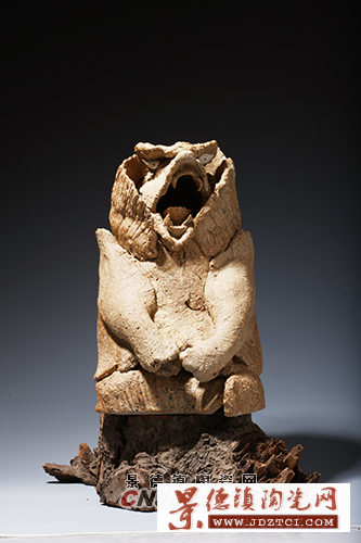 在努力探索陶瓷釉料新的藝術(shù)表現(xiàn)力的同時(shí),周國楨一直沒有停止對陶瓷泥料的試驗(yàn)與探索。在他的陶藝大觀園里,有的作品是用瓷土創(chuàng)作的,有的作品是用陶土創(chuàng)作的,還有作品是將瓷土與陶土進(jìn)行不同比例的勾兌后創(chuàng)作的……值得大書特書的是周國楨首次成功讓粗質(zhì)材料成為陶瓷藝術(shù)創(chuàng)作的有用之材。1985年,周國楨在經(jīng)過多次失敗性試驗(yàn)之后,成功地將素被人們用來制作保護(hù)陶瓷燒成的匣缽或耐火磚、耐火板之用的“低賤之材質(zhì)”——匣缽?fù)烈?a href="http://qasw37.cn" target="_blank">陶藝創(chuàng)作中。結(jié)果使其陶藝作品頓時(shí)呈現(xiàn)出耐人尋味的原始、古拙、粗獷、純真之風(fēng)格,獲得了意想不到的藝術(shù)效果。以匣缽?fù)寥〈?xì)的瓷土,以及匣缽?fù)恋乃囆g(shù)表現(xiàn)力的成功發(fā)掘和應(yīng)用,使周國楨又一次完成了藝術(shù)“變法”,順利進(jìn)入到 “古風(fēng)時(shí)期”。