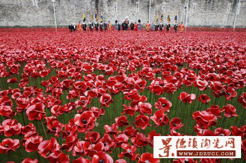 倫敦塔護城河中這一名為“血染的土地紅色的!钡难b置藝術(shù),是為紀念888246名在第一次世界大戰(zhàn)中陣亡的英國和前英殖民地將士。這些陶瓷罌粟在11月12日,一戰(zhàn)百年紀念日后第二天開始拆除并售出。