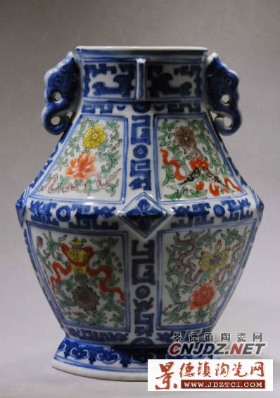 “青花仿古夔龍開光粉彩暗八仙尊” 紋飾復(fù)雜多變,胎質(zhì)白皙細(xì)膩,青花發(fā)色雅致沉穩(wěn),粉彩繪制暗八仙,畫工精細(xì),寓意吉祥,整體器型沉穩(wěn)大氣,尤為難得。