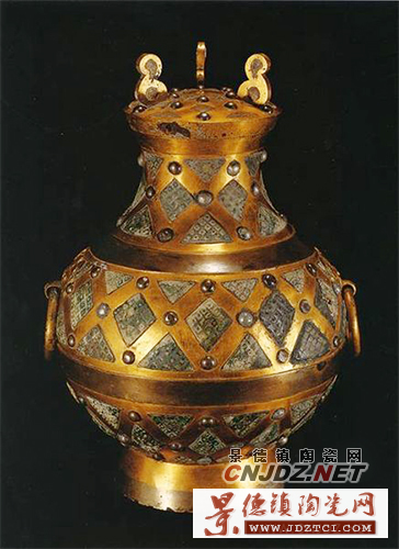 嵌琉璃乳釘紋鎏金銅壺 河北省博物館