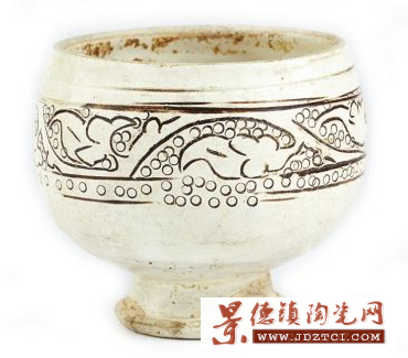 宋代珍珠地劃花高足杯