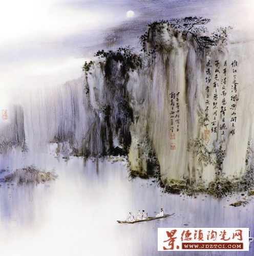 李小聰:器形不能當(dāng)做一張卷起來的紙來看,器形也涉及到一個(gè)特有的構(gòu)圖形式,哪怕《富春山居圖》多么的美,但如果一旦卷起來,就體現(xiàn)不出它的優(yōu)勢(shì)了,因?yàn)榫砥饋砗,視覺畫面是被局限在一個(gè)狹窄的空間上,所以器形的瓷畫,需要特殊構(gòu)圖。這些都是經(jīng)過長久的經(jīng)驗(yàn)才能把握好的,也需要有匠人的心態(tài),一般的國畫家很難做好這方面的構(gòu)圖。