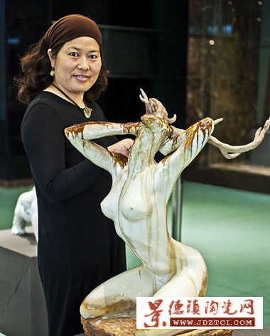 趙坤的作品著力體現(xiàn)出一種雕塑形體本身的象征性和審美感,她是用陶瓷作為材料的雕塑家,她的作品超越了工藝化陶瓷雕塑的種種特質(zhì),與工藝化的陶瓷雕塑有著本質(zhì)上的區(qū)別。她的作品雖然是以陶瓷為原料和手段,但是并不屬于所謂“工藝美術(shù)”的范疇。在這里,我并沒有貶低傳統(tǒng)手工工藝的意思,而是想說明以趙坤的創(chuàng)作為代表的一個線索在廣義上的“陶瓷藝術(shù)”界存在的價值。