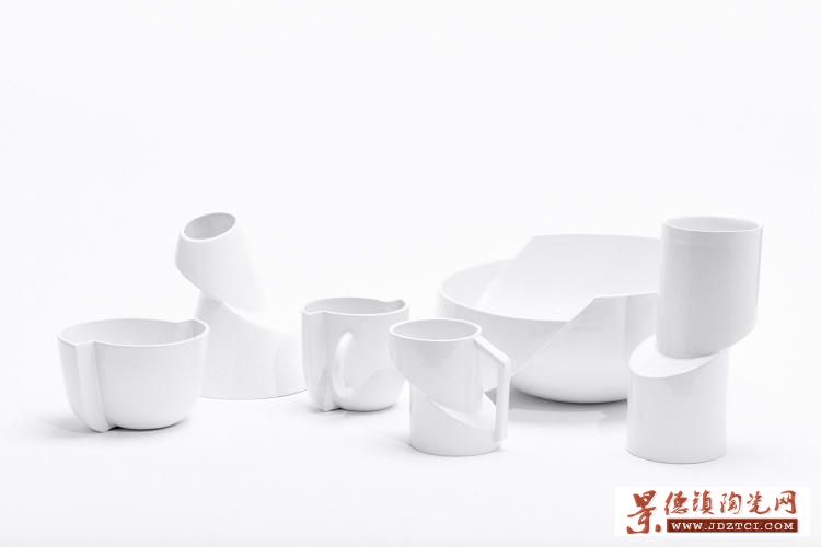 盛放食物和水的容器是我們每天都會使用到的物品,對于這些司空見慣的水杯、瓶子、碟子等器皿,我們可能不會對其有太多留意,但是這些普通的物品落到了設計 者手中,卻能煥發(fā)出別樣的魅力。第一眼看到伊恩·安德森作品原型的人,都會認為那堆疊在工作臺上的陶瓷器皿是制作失敗的殘次品,并且還不小心的粘在了一起。但是事實是,這些作品正是安德森最新設計的不對稱陶瓷器皿。