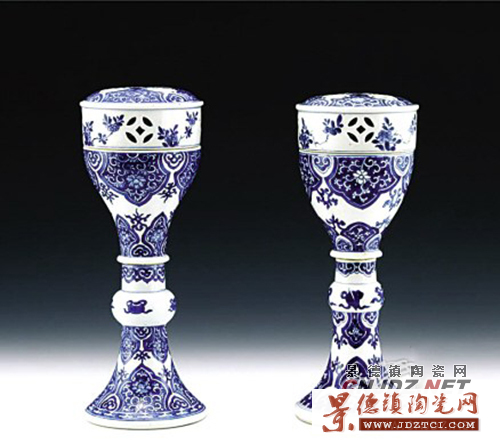 這對薰?fàn)t應(yīng)該是清康熙年間根據(jù)西方客戶的訂貨要求生產(chǎn)的,形制高挑秀美,與中國傳統(tǒng)式樣不同,屬康熙外銷瓷中并不多見的精品。器腹所飾多層如意花卉紋是康熙外銷瓷上的流行紋樣,時代特色鮮明。同時,這件由四構(gòu)件組裝的、可以脫卸的器皿歷經(jīng)300年仍保持完好,也是難能可貴。