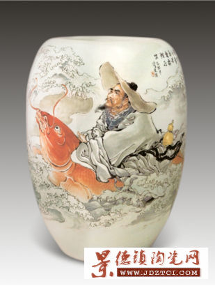 我對王老先生的訪談,是在他的藝術展廳兼工作室,還兼他的娛樂健身房,因為在他的畫室旁邊,就有一張非常正規(guī)的乒乓球桌。王老先生笑著告訴我,這樣他在繪畫之余,就可以活動筋骨打打乒乓球。第一次見面,王老先生完全不像我想象中的80多歲高齡,非常清朗干練,可謂精神矍鑠。那段時間,王老先生經常往返于南昌與景德鎮(zhèn)之間,他以年輕人一樣的旺盛精力,正在創(chuàng)作兩幅巨型瓷板畫,預備第二年到南昌在江西美術館做展出。其中他所創(chuàng)作的一幅《南極星麻姑仙同往瑤池赴壽宴》,創(chuàng)下當年單幅最大粉彩瓷板畫的世界記錄。那天的見面,就是王老風塵仆仆從南昌趕回來接受我的采訪。