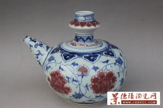 明代洪武時(shí)釉里紅瓷器較多,其造型紋飾有元代遺風(fēng),顏色淺紅淺灰,很少有純正的。宣德朝的釉里紅燒制極為成功,形成了鮮艷的寶石紅色。釉里紅由于在康熙后期已經(jīng)成功制作,所以雍正早期釉里紅制品有康熙遺風(fēng),康熙后期御廠瓷器制作水平有很大提高,瓷器繪畫以及釉里紅發(fā)色等有所變化,多了釉里紅發(fā)色。因?yàn)橛岳锛t的燒造難度較大,發(fā)色難以掌握,所以仿造者更加容易露出破綻。