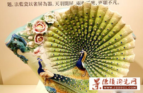 此件瓷品的雕模師蕭宇君、彩繪師林培懿也出席記者會。據(jù)介紹,這件瓷品從造型上,以扇形呼應(yīng)畫作中孔雀開屏的雄偉大氣。雕塑時,必須細(xì)致處理孔雀羽毛的紋路和層次,是對雕模師的一大挑戰(zhàn)。此外,瓷品孔雀羽毛上的紋路,也都是彩繪師一筆一畫手繪而成,展現(xiàn)工藝細(xì)膩。