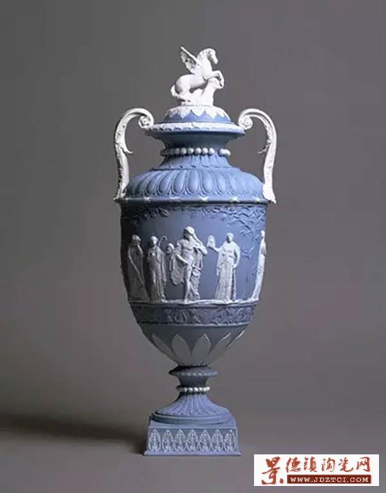 第一只 Jasperware 的誕生是實驗了 3000 多次以后的成果,它呈現(xiàn)出獨特的藍(lán)色,被稱為“Wedgwood 藍(lán)”。這個系列的花瓶通常不會被上釉,并不光滑的表面加上白色的浮雕(它們大多還與古羅馬、古希臘或者古埃及的神話人物相關(guān)),整個系列都呈現(xiàn)出典雅的新古典主義風(fēng)格。