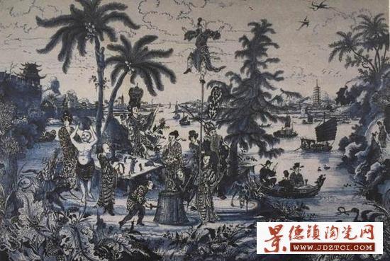 在美第奇試驗(yàn)失敗后數(shù)十載的時(shí)間里,似乎沒有人想再去仿制東方的陶瓷。但在1628年,一個(gè)名叫克里斯蒂安·威廉(Christian Wilhelm)的荷蘭陶工開始在薩瑟克(Southwark)制作容器。他用的是藍(lán)白兩色,主題則是多少有些生硬地從明代瓷器上照搬下來的。1637年,漢堡的一個(gè)陶器場也在制作類似的青花陶碟。我們對這兩個(gè)制陶場的情況幾無所知。它們似乎都是在1660年之前就破產(chǎn)了,當(dāng)時(shí),兩個(gè)更加有名的制陶場所已經(jīng)在生產(chǎn)藍(lán)白相間、質(zhì)量高得多的器皿。一個(gè)是荷蘭代夫特(Delft)的那批陶器廠。在通俗的說法中,歐洲所有的這類容器都被冠以代夫特之名。另一個(gè)則是法國納韋爾(Nevers)的陶器廠。代夫特的那批陶器廠始于何時(shí),現(xiàn)在仍不確定,但已知的少量事實(shí)還是可以簡要概括如下。1614年,某個(gè)名叫克拉斯·揚(yáng)松·維特曼斯(Claes Janszoon Wijtmans)的家伙從邦聯(lián)議會(huì)那里獲得許可,成立了一個(gè)彩陶廠,生產(chǎn)像“印度地域”的那種陶器。在該地點(diǎn)的挖掘,也僅僅出土了意大利產(chǎn)的錫釉陶器類型的陶瓷碎片,裝飾的則是純粹的歐洲圖案,有石榴、橙子、鳥、獸和花。直到17世紀(jì)中期,陶器場才以著名的藍(lán)青花陶器迎來了它的輝煌時(shí)期。起初,這些陶器中的大部分都是仿自當(dāng)時(shí)由荷蘭人進(jìn)口到歐洲的中國和日本的陶瓷容器。在接下來的150年里,代夫特制造廠生產(chǎn)了一大批仿制的(還不包括假冒的)中國容器。其中一些如此接近原型,以至于一眼看上去都不太會(huì)看出它們是出自歐洲。
