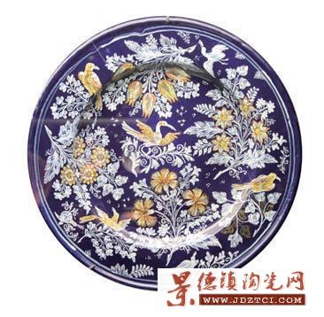 在大約1575年,在佛羅倫薩美第奇大公爵弗朗切斯科(Medici Grand Duke Francesco)的工廠里進(jìn)行了生產(chǎn)陶瓷的嘗試,此為歐洲首個(gè)記錄。在這里,仿制的陶瓷是用很多成分制作的,包括沙子、玻璃、粉末狀的水晶石、法恩扎(Faenza)的白土以及維琴察(Vicenza)的黏土。這家工廠生產(chǎn)的幼陶器皿雖然已經(jīng)比意大利產(chǎn)的花飾陶器要精美得多,但仍然不會(huì)被人誤以為是東方的陶瓷。它們中的大多數(shù)看起來就好像是在燒制過程中變得歪歪斜斜。流傳下來的產(chǎn)品(其中有40個(gè)有記錄可查)釉面有些模糊,里面還有細(xì)微的氣泡,而且差不多都采用了嘉慶(1522—1566)和萬歷(1573—1619)統(tǒng)治時(shí)期中國器皿上的白底青花圖案。羅浮宮里有一個(gè)松樹圖案的瓶,樹下吃草的那只鹿無疑是中國的,另一只瓶上畫著長尾巴的鳥,它們棲身于具有異國情調(diào)的花和植物中間。而紐約的大都會(huì)博物館(Metropolitan Museum)里則有一個(gè)大盤。畫面中, 一群歐洲人呆板地列隊(duì)走在中國風(fēng)景中——或許這正是賞心悅目的中歐合璧之作最早的樣本,它后來在18世紀(jì)風(fēng)靡一時(shí)。其他器皿在裝飾上表現(xiàn)的是伊斯蘭主題,這些東西在美第奇的陶工看來顯得東方味兒十足,一些還帶有古典的面具。