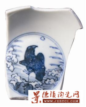 明代嘉靖前后,瓷器上出現(xiàn)了一個以鷹為主體的紋樣品種。此紋樣中,一只鷹以一足獨立于巨石之上;石下是一片遼闊的海洋;天空中有層層的云氣和一個太陽。細看鷹的姿勢,只見它高昂著腦袋,眼睛似乎在盯視太陽。這樣一幅圖,是要表達什么畫意呢?經(jīng)初步研究,我以為此圖是在表現(xiàn)當(dāng)時造反者的“豪邁”之氣!具體而言,與發(fā)生在正德年間的一次民間起義有關(guān)。