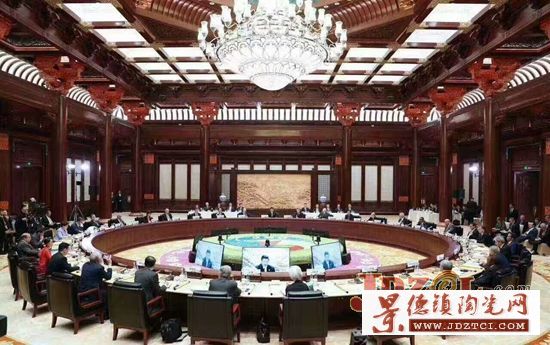 15日下午,29國(guó)元首在北京雁棲湖國(guó)際合作高峰論壇主會(huì)議廳召開(kāi)圓桌峰會(huì),在氣勢(shì)恢宏的主會(huì)議廳,習(xí)近平主席座位的后方兩側(cè)擺放著一對(duì)以八吉祥紋和蓮花相配合作為紋飾圖案的青花瓶,這是由元華堂選送的仿乾隆青花纏枝托八寶紋鋪首尊;在高峰論壇新聞發(fā)布廳,以牡丹為主題利用青花斗彩技法的瓷瓶特別引人注目,這是由藝術(shù)家曾維開(kāi)創(chuàng)作的《國(guó)色天香》,象征著富貴吉祥,繁榮昌盛;還有仿乾隆青花開(kāi)堂折枝果紋獸耳扁瓶、色釉瓶《鶴春千秋》、象耳瓶《圓夢(mèng)中華》、青花龍鳳胭脂紅斗彩茶具8件套、斗彩九龍盤(pán)、瓷瓶《海納百川》.....據(jù)了解,112件(套)陶瓷藝術(shù)品和生活日用瓷陳列在高峰論壇的5個(gè)重要區(qū)域,分別是國(guó)際合作高峰論壇主會(huì)議廳、習(xí)近平主席與外國(guó)元首及政府首腦會(huì)見(jiàn)大廳、高峰論壇新聞發(fā)布廳、各國(guó)元首等候會(huì)見(jiàn)廳、各國(guó)元首峰會(huì)期間休息廳。