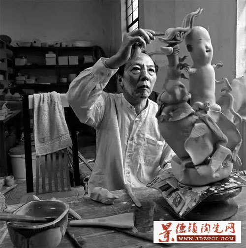 為了提升作品的表現力,長期以來我一再嘗試著用自己琢磨出來的一些技藝手法,努力在材料運用、成型燒造、形象構思等諸多方面,展示我內心的呼喚和渴望。如把中國水墨寫意的手法融匯到雕塑的造型上;首創(chuàng)一種隨性泥片卷塑法;率先將青釉在瓷雕上大量重復的使用,并獨創(chuàng)配景方式,加強了青釉光影的動律感,突破了雕塑的一般原理。所有這些,都獲得了國內外同行的謬獎和熱評。大家認為,這屬于中國更屬于世界。