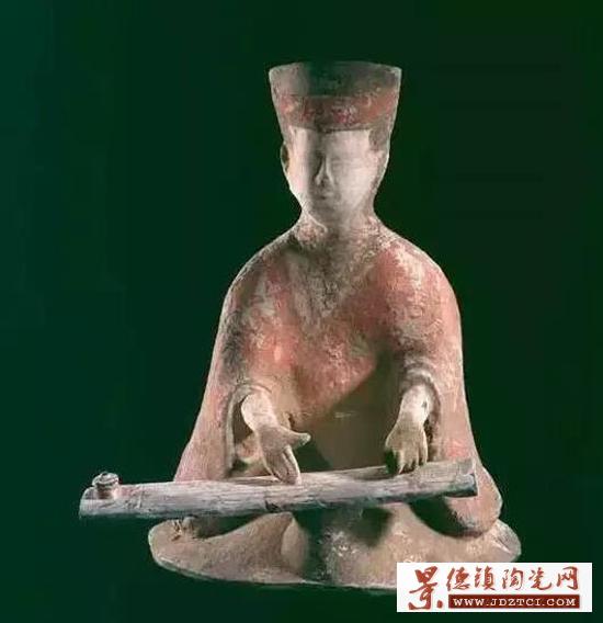 彈箏陶俑 彩色陶 漢代