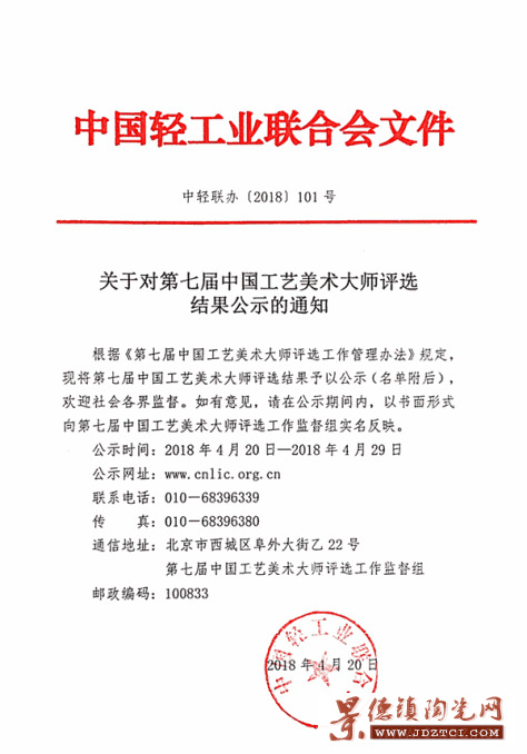 第七屆中國工藝美術(shù)大師評(píng)選結(jié)果公示名單