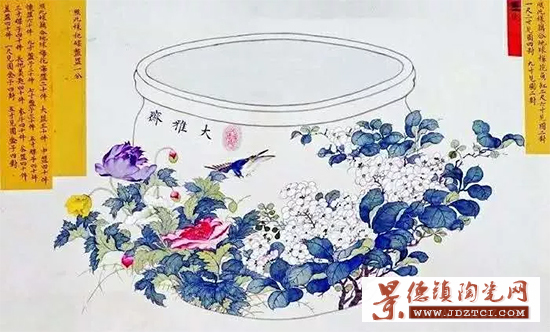 不久,這些畫稿就將粘上象征圣意的黃單發(fā)往江西景德鎮(zhèn)御窯廠燒制。