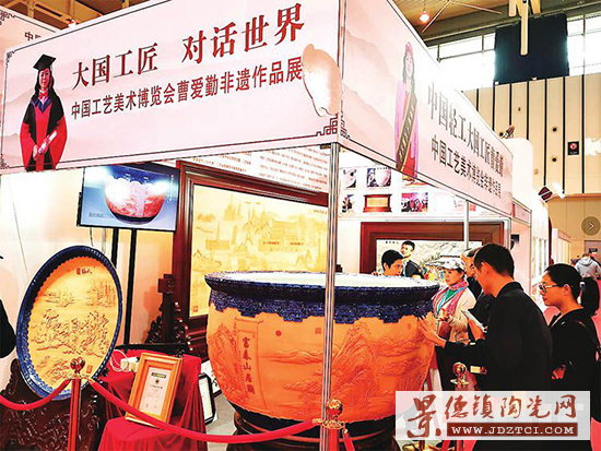 日前,2019中國工藝美術博覽會“百鶴杯”工藝美術設計創(chuàng)新大賽頒獎典禮在南京國際博覽中心舉行。經(jīng)過全國15位專家評委的嚴格、公正、權威評選以及網(wǎng)絡投票等環(huán)節(jié),由中國輕工大國工匠、中國陶瓷設計藝術大師、中國雕刻藝術大師、中國手工藝大師、洪州瓷雕唯一非遺傳承人曹愛勤創(chuàng)作并獲得大世界基尼斯紀錄的大型雕刻瓷缸《富春山居圖》,在全國2570件作品中脫穎而出,榮登榜首,獲得首屆中國工藝美術博覽會“百鶴金鼎獎”。