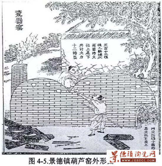 葫蘆窯為景德鎮(zhèn)特有的葫蘆形柴燒瓷窯,最早出現(xiàn)于元末明初,直到清初出現(xiàn)了蛋形窯(鎮(zhèn)窯)后才逐漸停止使用。明代宋應(yīng)星的《天工開物》對景德鎮(zhèn)的葫蘆窯有專門的文字記載,并配有插圖。明代葫蘆窯兼?zhèn)淞怂卧獣r期龍窯和饅頭窯的優(yōu)點,燒成技藝有了長足的進步,對整個明代景德鎮(zhèn)制瓷業(yè)發(fā)展和清代鎮(zhèn)窯的形成做出了杰出貢獻。