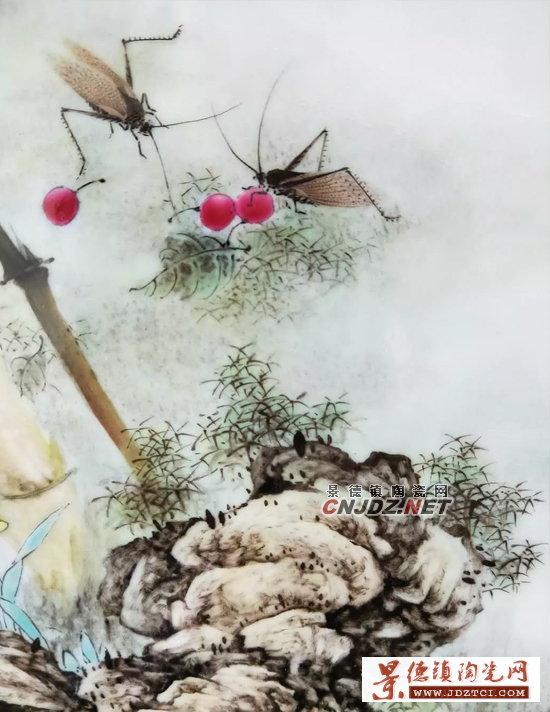 景德鎮(zhèn)的瓷繪種類無非山水、人物、翎毛(含動物和花鳥),畫花鳥者眾多,而善工兼寫者少,蔡昌鑒在其中,已經(jīng)算得上是佼佼者。他的花鳥瓷畫,無論是巨幅瓷板,還是小件瓷瓶都會帶有較明顯的“蔡氏”風(fēng)格。從最初的重工粉彩,到之后的工筆粉彩,再到如今的工兼寫,風(fēng)格的漸變間卻始終保有著構(gòu)圖的精巧,筆意的流暢和色彩的和諧,他用心所造的花鳥瓷畫世界可謂活色生香,已臻化境。