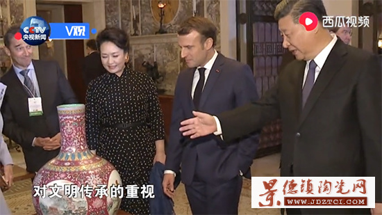 熱烈祝賀習主席一行,訪問歐洲三國圓滿成功!景德鎮(zhèn)豐瑤陶瓷公司推出“粉彩天球瓶”作品,被習主席作為國禮帶到法國,贈送給法國總統(tǒng)總統(tǒng)馬克龍先生。習總書記并向馬克龍總統(tǒng)介紹中國傳統(tǒng)文化之寓意!青年藝術(shù)家周國生有幸參與此繪畫工藝設(shè)計添色點染取得圓滿成功,成為此件“國禮”的繪畫創(chuàng)作人。