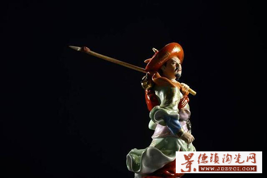 梁紅玉是南宋抗金名將韓世忠的夫人和得力助手,尤其是在黃天蕩大捷中,她鎮(zhèn)定自若,擊鼓指戰(zhàn),激勵(lì)士氣,以少勝多,被后人傳為佳話。已故陶瓷美術(shù)家曾山東于二十世紀(jì)五十年代創(chuàng)作的《梁紅玉擊鼓指戰(zhàn)》,成功地塑造了這位集美貌、智慧與勇氣于一身的巾幗英雄,通過(guò)瓷雕獨(dú)有的工藝美術(shù)技法來(lái)充分展示其剛?cè)嵯酀?jì)的風(fēng)采。