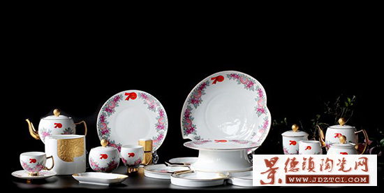 《如意中國(guó)》套具每套70件,27個(gè)品種。直接采用立體化如意造型,并在其中嵌入70字樣,凸顯建國(guó)70周年這個(gè)歷史時(shí)刻,突出70周年中國(guó)共產(chǎn)黨領(lǐng)導(dǎo)下的人民美好生活的愿景。在其它細(xì)節(jié)上,如意型蓋鈕、如意型開(kāi)窗、如意型筷架、如意型毛巾托盤(pán)、如意型立體裝飾,都寓有這種理念。整體色彩采用紅色基調(diào),有紅動(dòng)中國(guó)的喜慶,牡丹是中國(guó)的國(guó)花,富貴氣派。如意紋采用描金繪畫(huà),紅底金紋,與五星紅旗一致的色調(diào),盡顯大國(guó)風(fēng)范。如意紋與牡丹搭配為“富貴如意”,深切地表達(dá)了對(duì)美好生活的向往和希冀,期望生活處處順心如意。整體器型精致不失大氣,展示我泱泱大國(guó)版圖遼闊,美麗富饒。