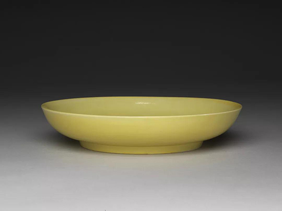 低溫黃釉瓷創(chuàng)燒于明初景德鎮(zhèn)官窯,但傳世品罕見!包S”與“皇”諧音,黃色因此是皇家尊貴的象征,而全黃瓷器只限于御用。