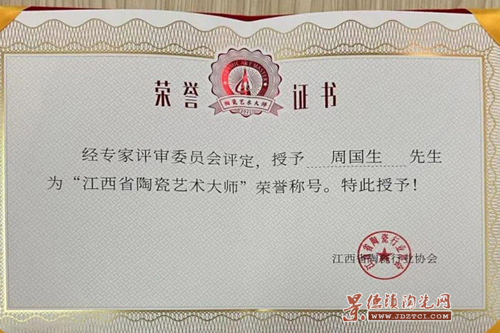 周國生被江西省陶瓷行業(yè)協(xié)會授予第二屆“江西省陶瓷藝術(shù)大師”榮譽稱號。