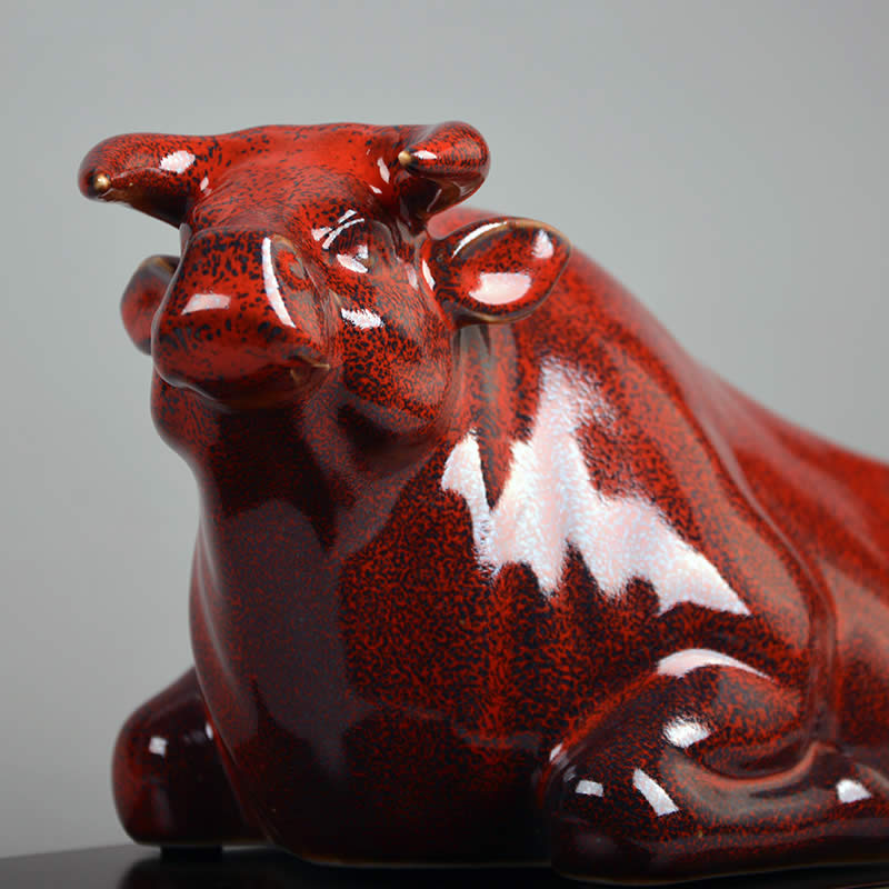 劉少平《開運(yùn)紅牛》生肖牛陶瓷雕塑