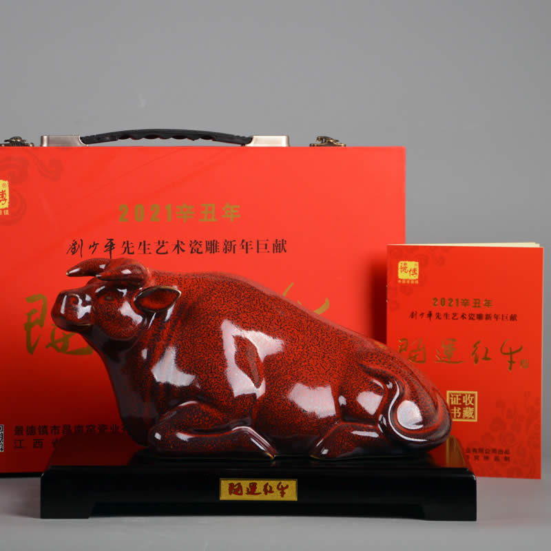 劉少平《開運(yùn)紅?!飞づL沾傻袼?牛吉祥物擺件工藝品辦公室桌面玄關(guān)新年禮品