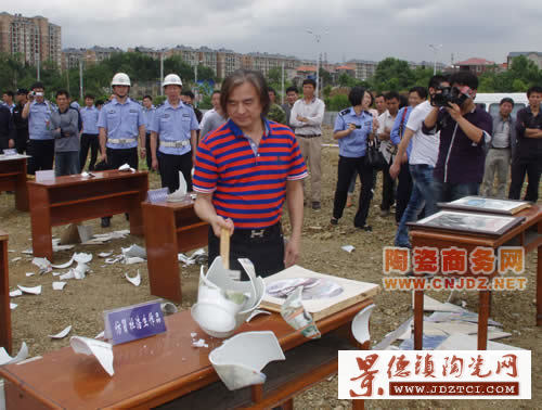 5月15日上午,景德鎮(zhèn)市公安經(jīng)偵部門在市景北大道路口海峰花園旁組織開展主題為“嚴(yán)厲打擊經(jīng)濟(jì)犯罪,保護(hù)陶瓷知識(shí)產(chǎn)權(quán)”的宣傳活動(dòng);顒(dòng)現(xiàn)場(chǎng)集中銷毀仿冒、假冒知名陶瓷大師藝術(shù)作品480件、假發(fā)票630萬份、假煙、假酒、假飲料、假食品等多種假冒偽劣商品數(shù)以萬計(jì)。據(jù)業(yè)內(nèi)人士透露,此次銷毀的仿冒陶瓷大師作品價(jià)值高達(dá)2億元。