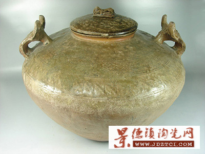浙東越窯青瓷博物館藏品:青釉水波雙耳瓿