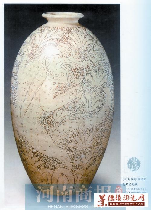 離鈞瓷、汝瓷等名瓷產(chǎn)地不足70公里的登封市,有一種名叫珍珠地劃花“雙虎紋橄欖瓶”的瓷器,被收藏于北京故宮博物院,成了國寶級瓷器。這件作品是在登封窯衰落700多年后被復(fù)仿制出來的,它的作者就是李景洲。